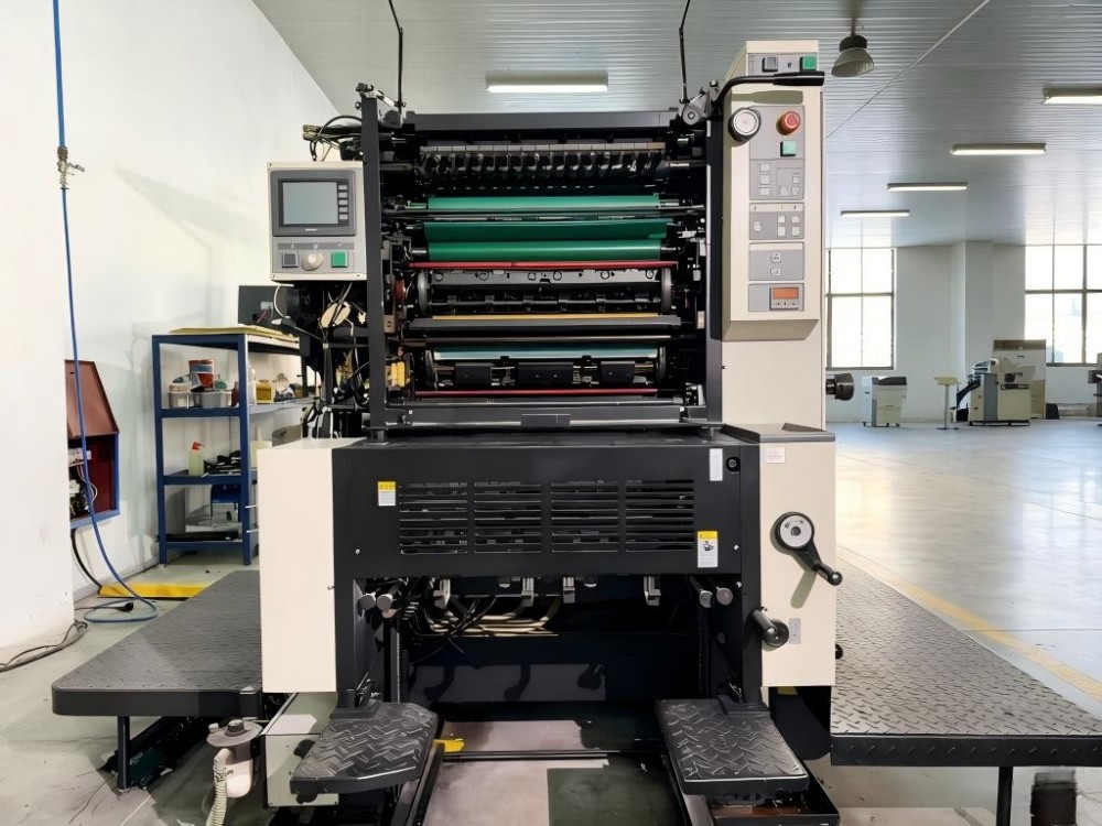 Aceasta este presa de tipărire offset A2 pentru imprimarea etichetelor în două culori. Este făcut pentru producții mici și medii. Totul ține de eficiență și de a fi ușor de utilizat. Poate imprima două culori într-o singură trecere de hârtie. Asta economisește timp și muncă. Dispune de dispozitiv de pozitionare si tensionare rapida pentru montarea placilor. Acest lucru reduce timpul de schimbare. Există și un sistem semi-automat de curățare a rolelor de cerneală, care accelerează schimbările de culoare și ușurează volumul de muncă al operatorului. Presa are un sistem de alimentare continuă cu hârtie. Este asociat cu o masă de aspirare cu vid și trei benzi de transport rotative. Această configurație gestionează bine diferitele grosimi de hârtie. Clemele cu arc dublu opresc hârtia să alunece. Aceasta este cheia pentru imprimarea de mare viteză. Are și caracteristici practice. Lucruri precum umezirea alcoolului și reglarea automată a volumului de apă. De asemenea, are livrare de hârtie de calitate cu duze de aer și roți de aspirație.