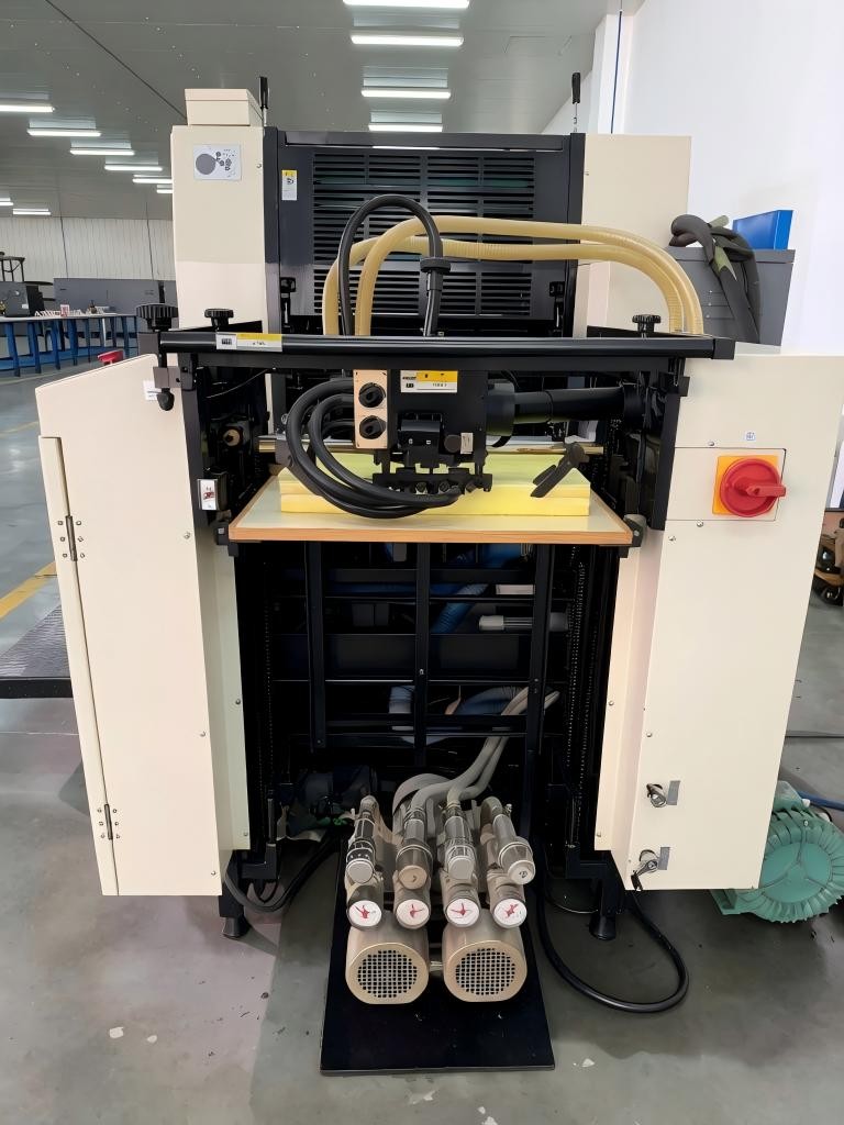 8) Mecanismele de transport al hârtiei, cum ar fi capul de alimentare cu hârtie, masa de alimentare cu hârtie cu aspirație în vid, ghidajul frontal și dispozitivele de prindere pentru hârtie asigură că presa poate imprima pe o gamă largă de hârtie, de la hârtie groasă la hârtie subțire.